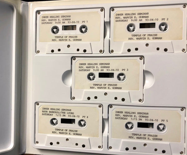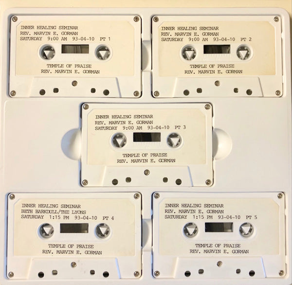 Religious; Scripture; Audio; Five Audio Tapes each labeled Inner Healing Seminar, Rev. Marvin E. Gorman Part 1, 2, 3, 4 and 5 in white vinyl cassette booklet. Near VVG.