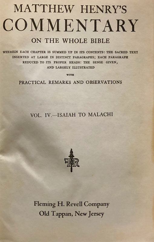 AUTHOR: Matthew Henry PUBLISHER: Fleming H. Revell ISBN: YEAR: FORMAT: Hardcover EDITION: