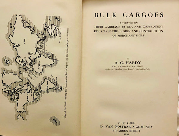 Collectible. A treatise on their carriage by sea and consequent effect on the design and construction of merchant ships. Printed in Great Britain. Indexed. Embossed emblem on front cover with pen and quill. Illustrated with photographs and drawings in B/W. Slight yellowing to pages. Dark blue cloth/silk boards with bright gold lettering. VVG. No DJ. (160 Pgs.)